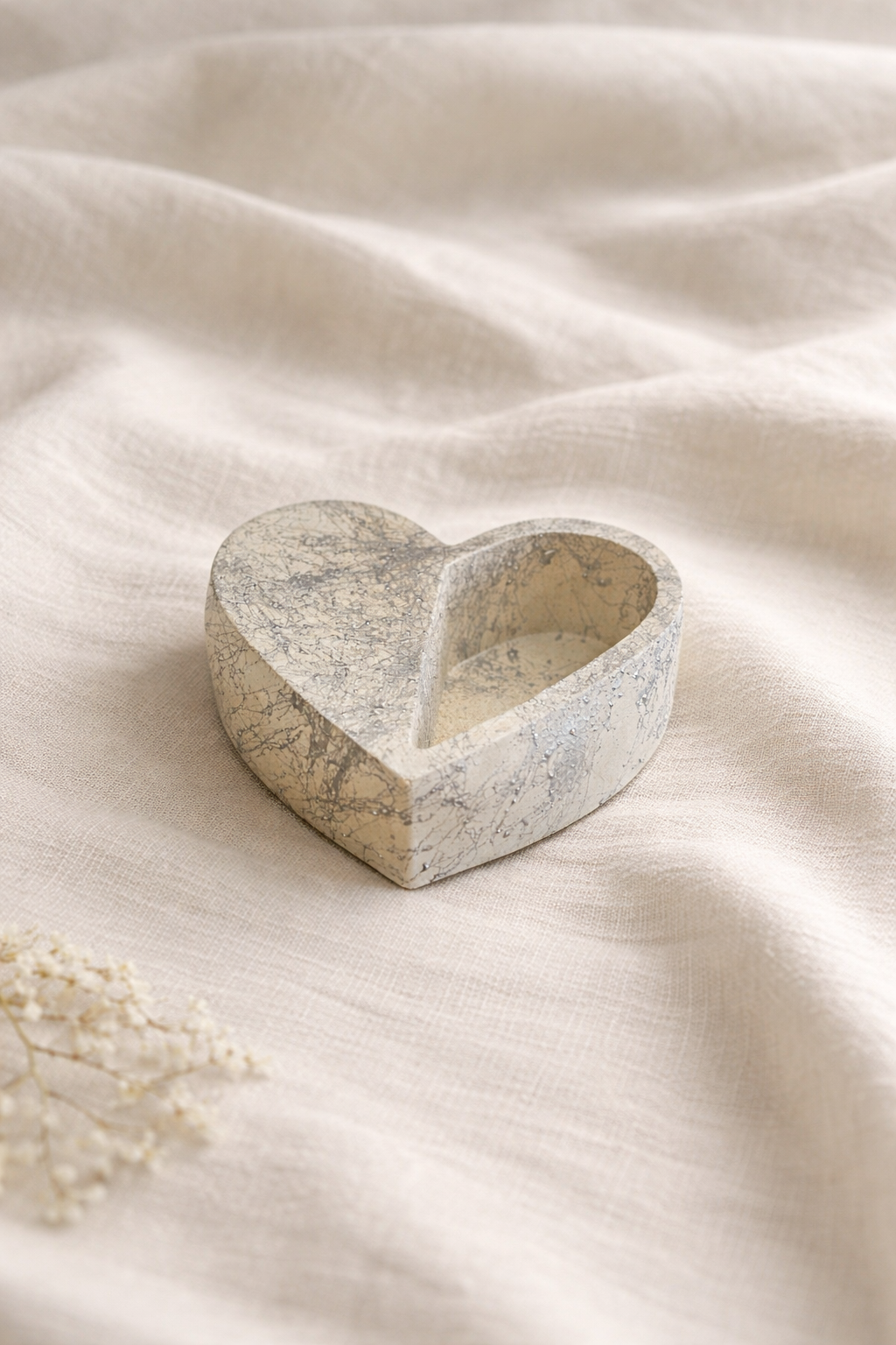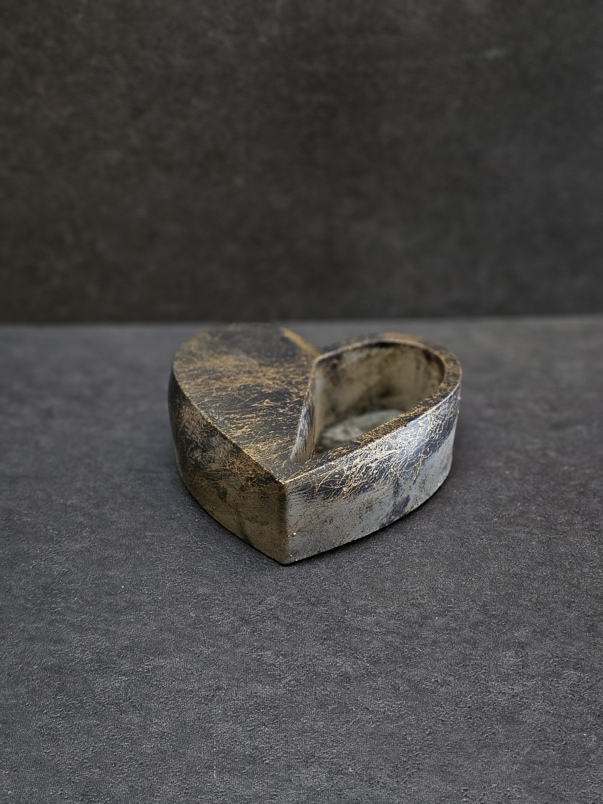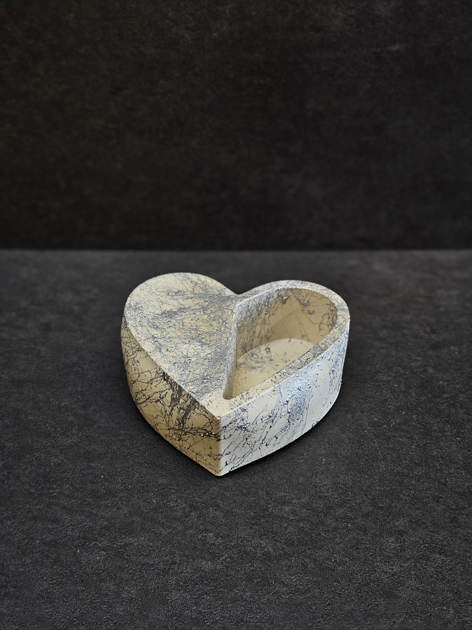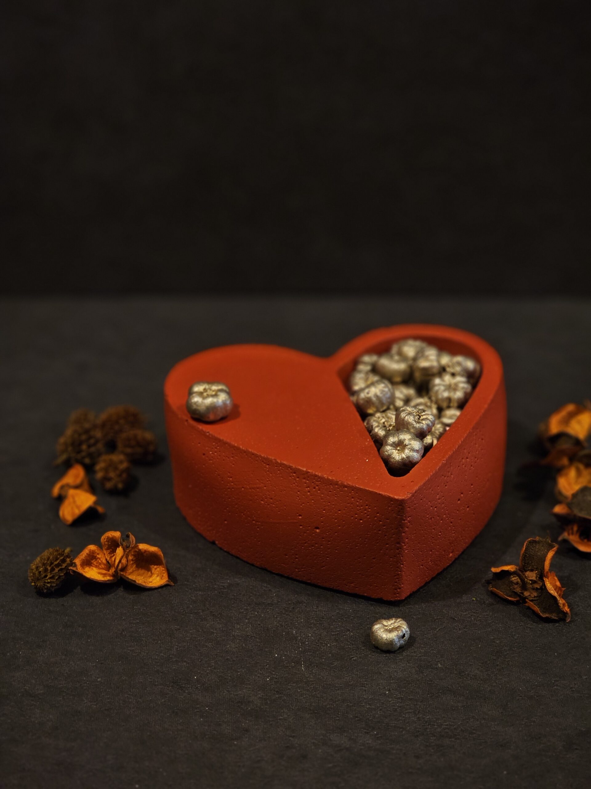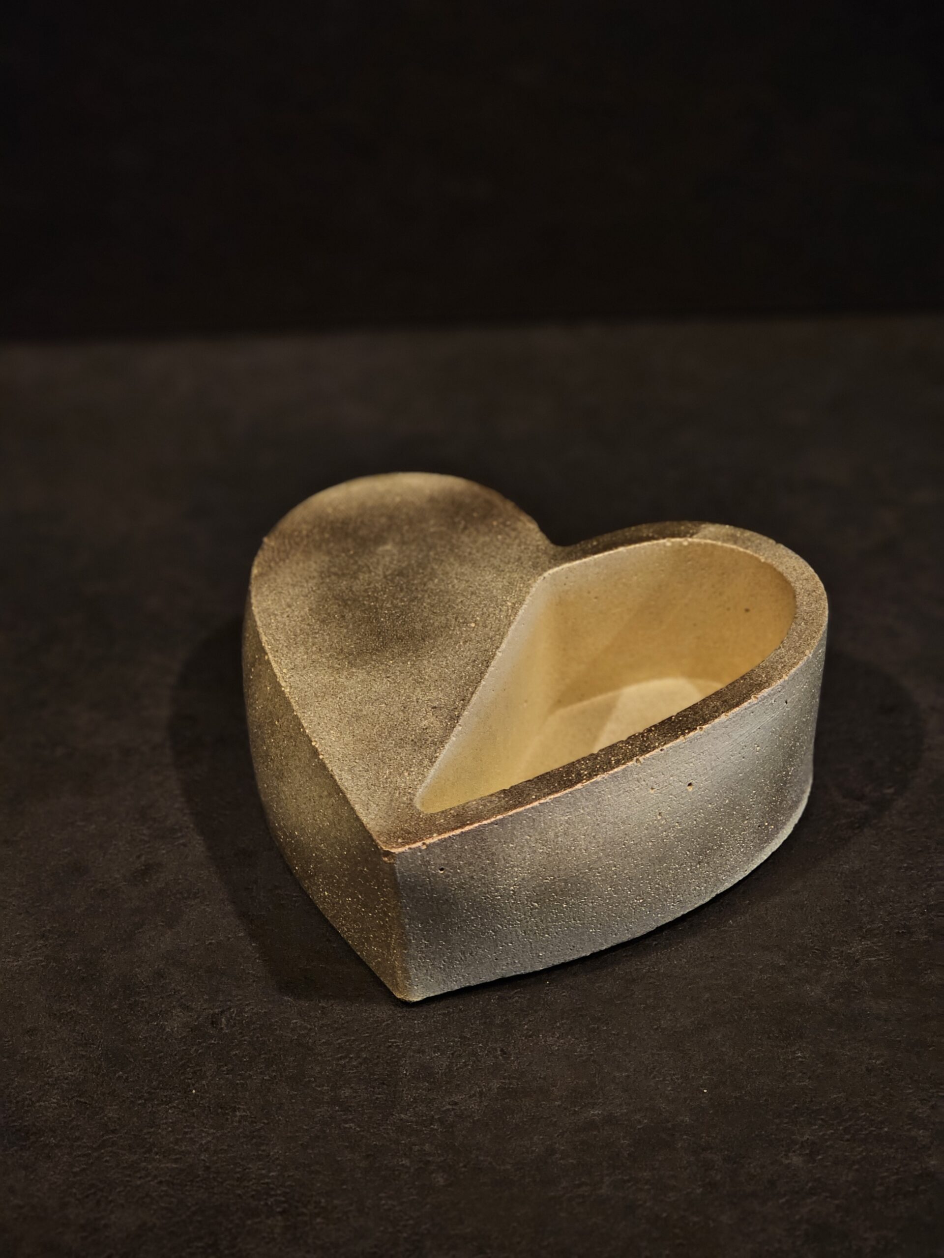 Įneškite jaukumo ir unikalumo į savo interjerą su šia rankų darbo betonine širdies formos dekoracija. Sukurta su meile, ši dekoratyvinė detalė išsiskiria minimalistiniu dizainu, natūralia betono tekstūra ir subtiliais auksiniais-bronzos atspalviais, kurie suteikia prabangos akcentą.