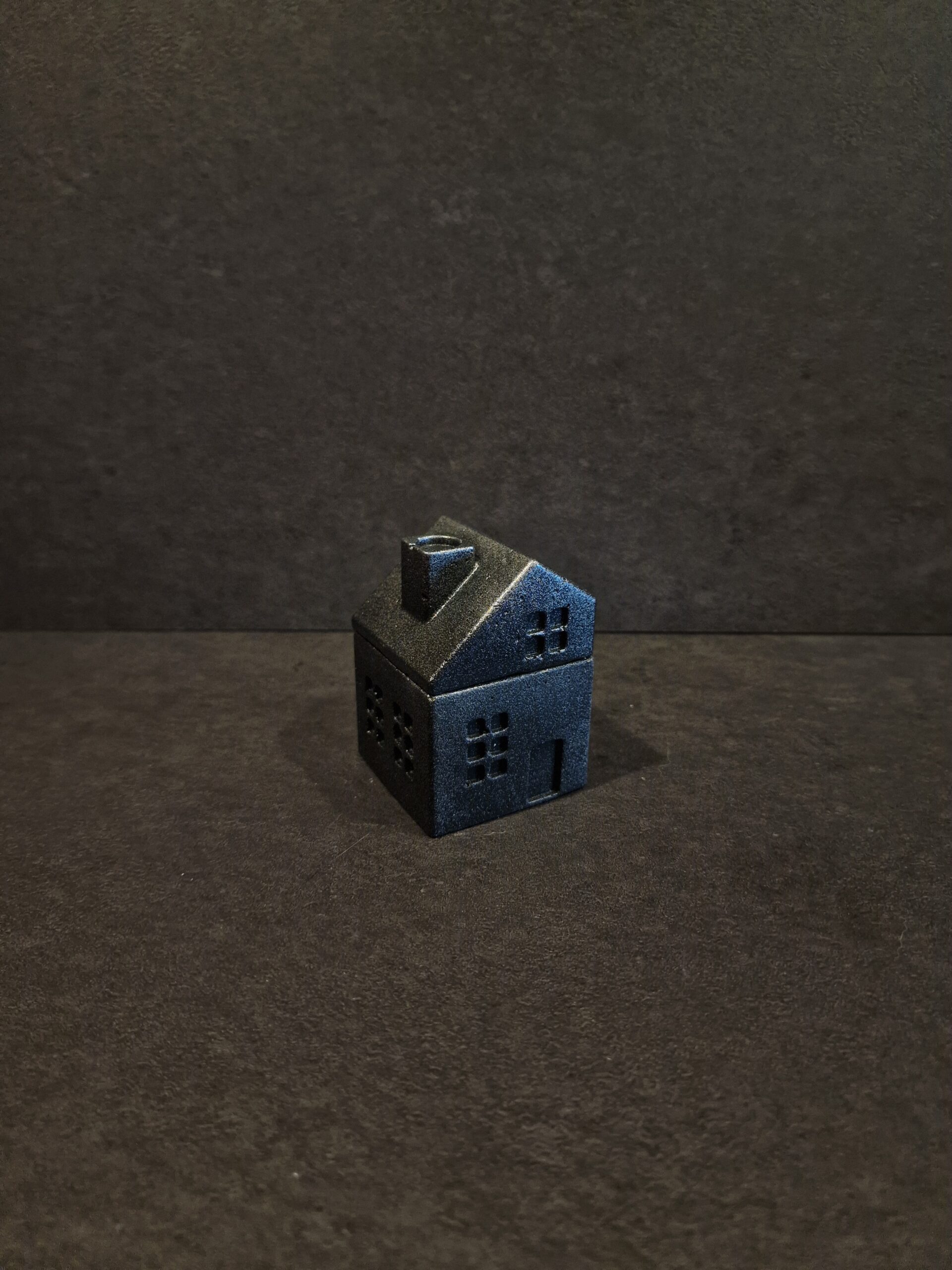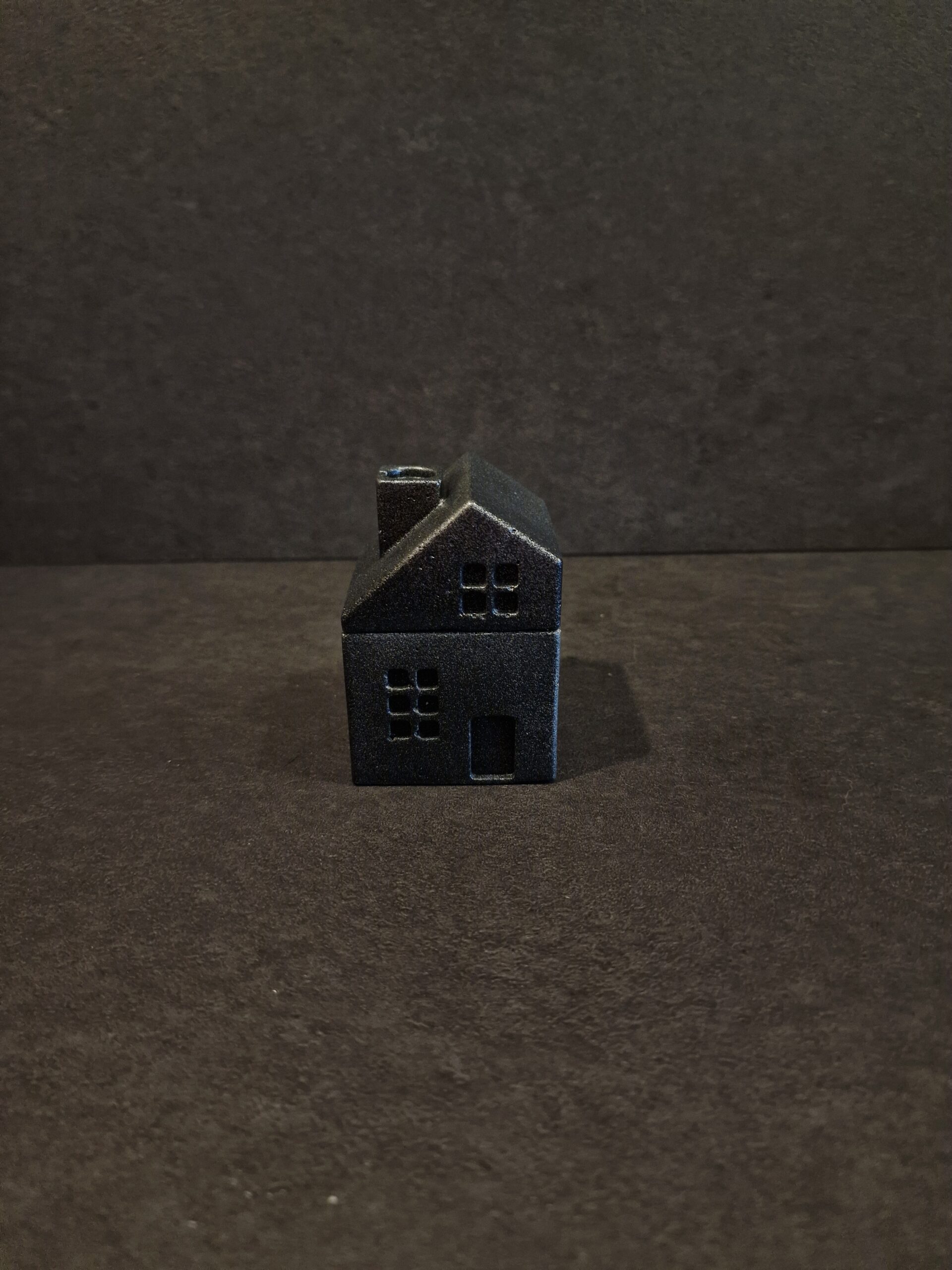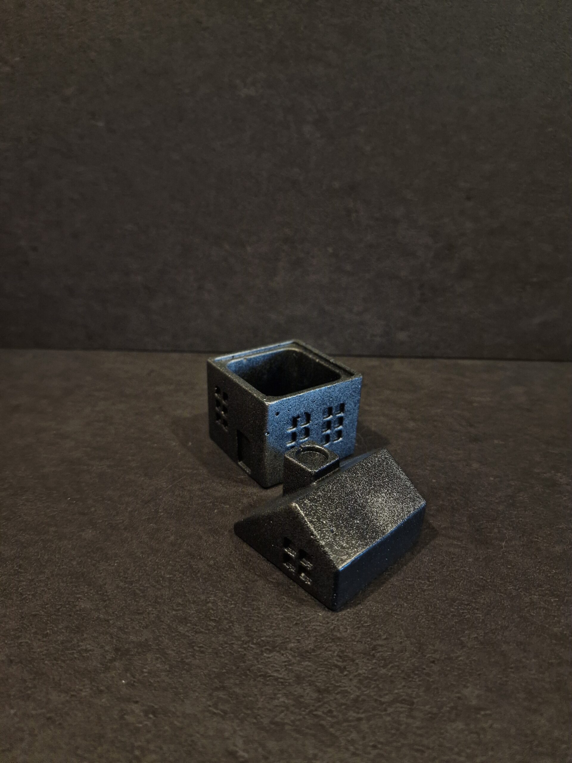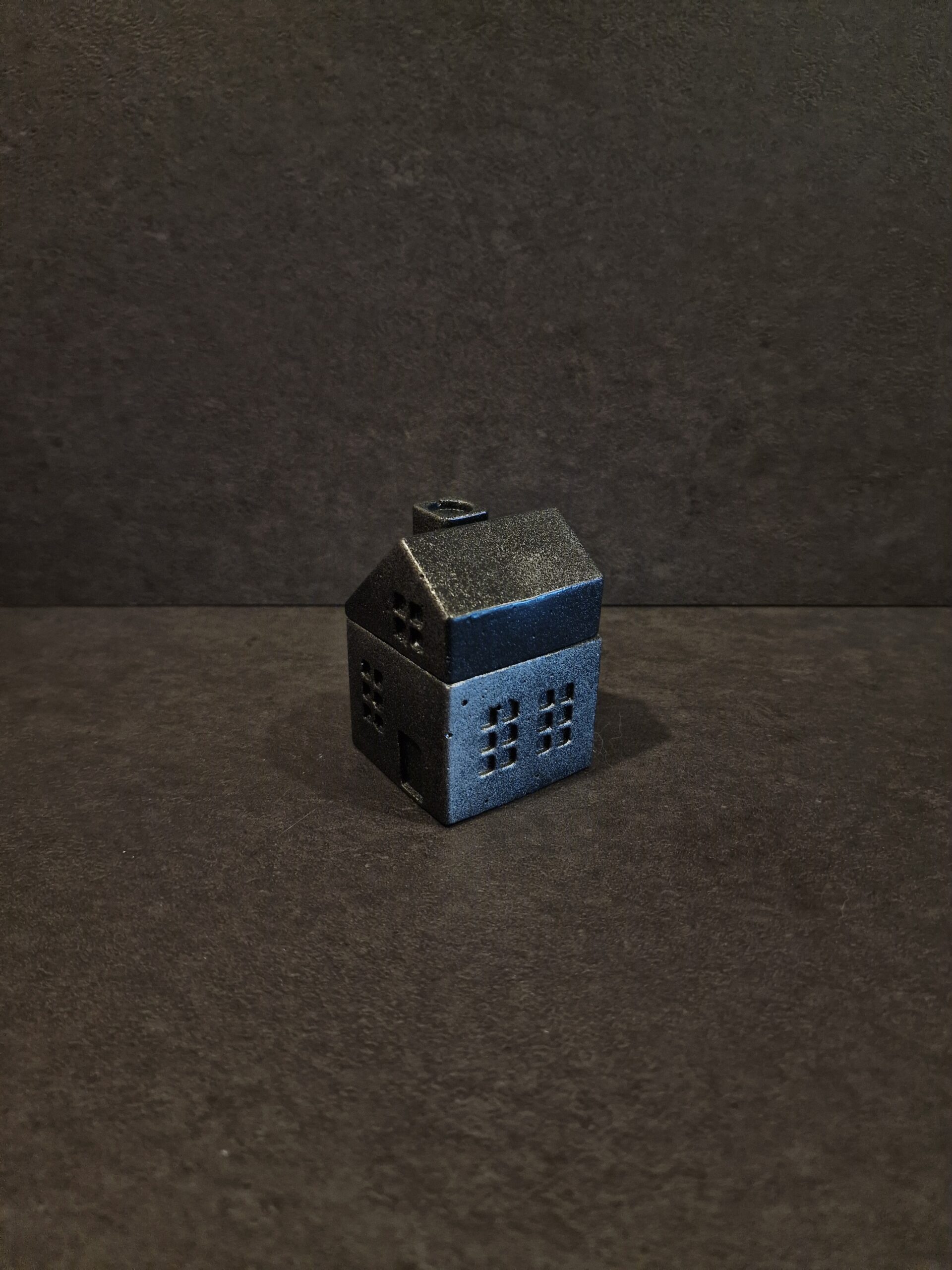 Rankų darbo betoninė dėžutė Namelis mažas juodas-sidabras