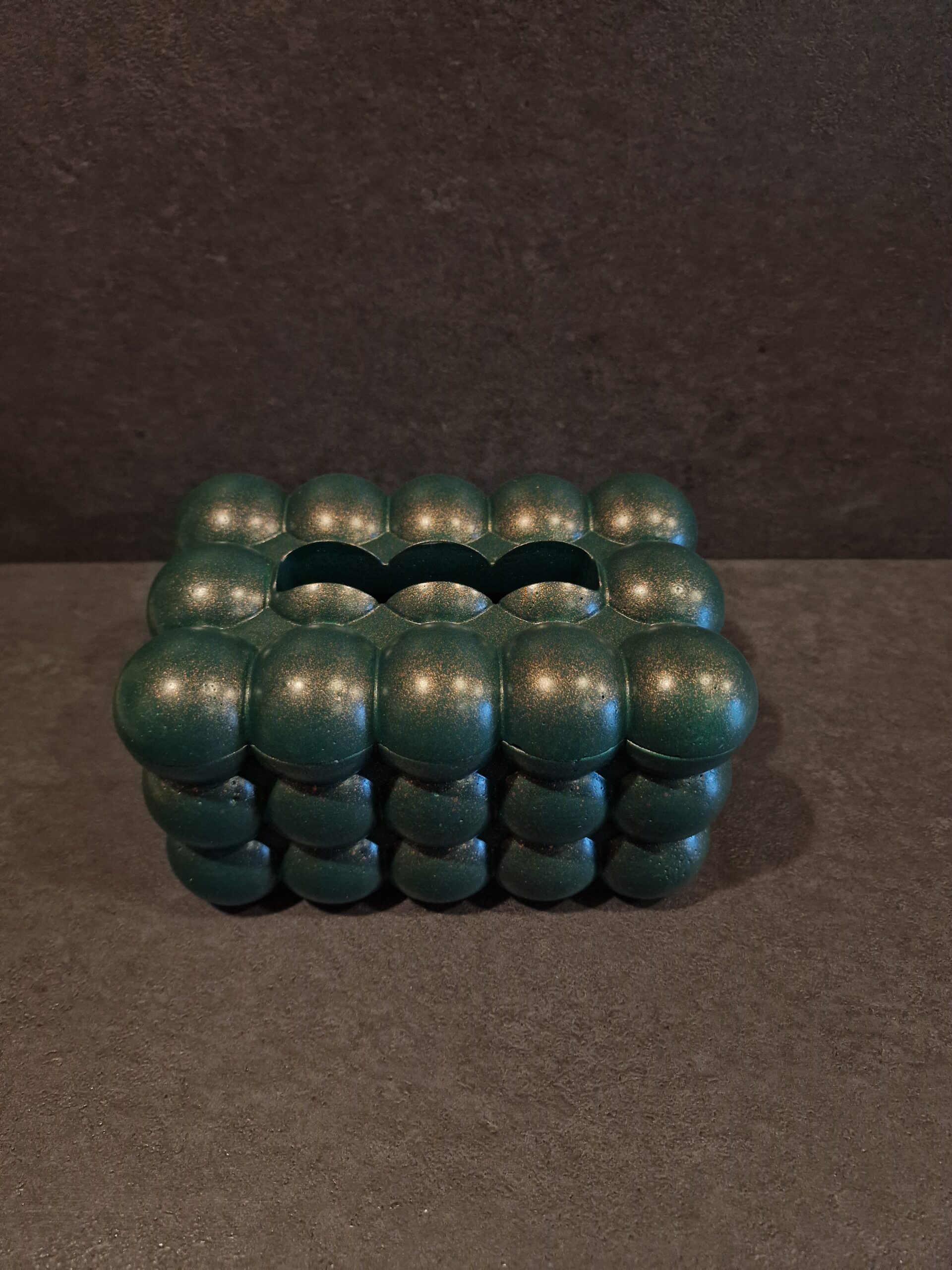 Ieškai stilingo ir išskirtinio sprendimo savo namams? Ši betoninė rankų darbo servetėlių dėžutė – tikras interjero perlas, sujungiantis minimalistinį dizainą ir praktiškumą. Moderni burbulų formos tekstūra suteikia žaismingumo ir elegancijos, o tvirtas betonas garantuoja ilgaamžiškumą.
