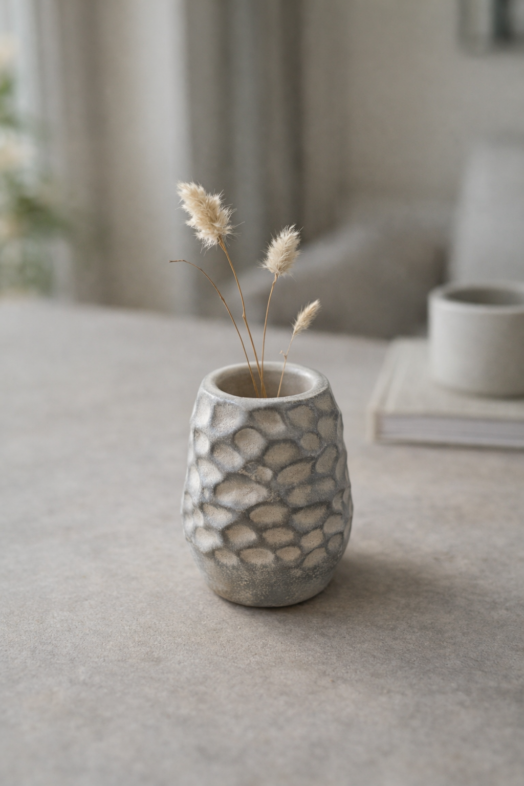 Ši betoninė vazelė yra idealus pasirinkimas tiems, kurie vertina rankų darbo interjero dekoracijas ir nori į savo namus įnešti šiuolaikinio dizaino dvelksmą. Tai taip pat gali būti puiki dovana artimiesiems, kurie mėgsta išskirtinius interjero akcentus.