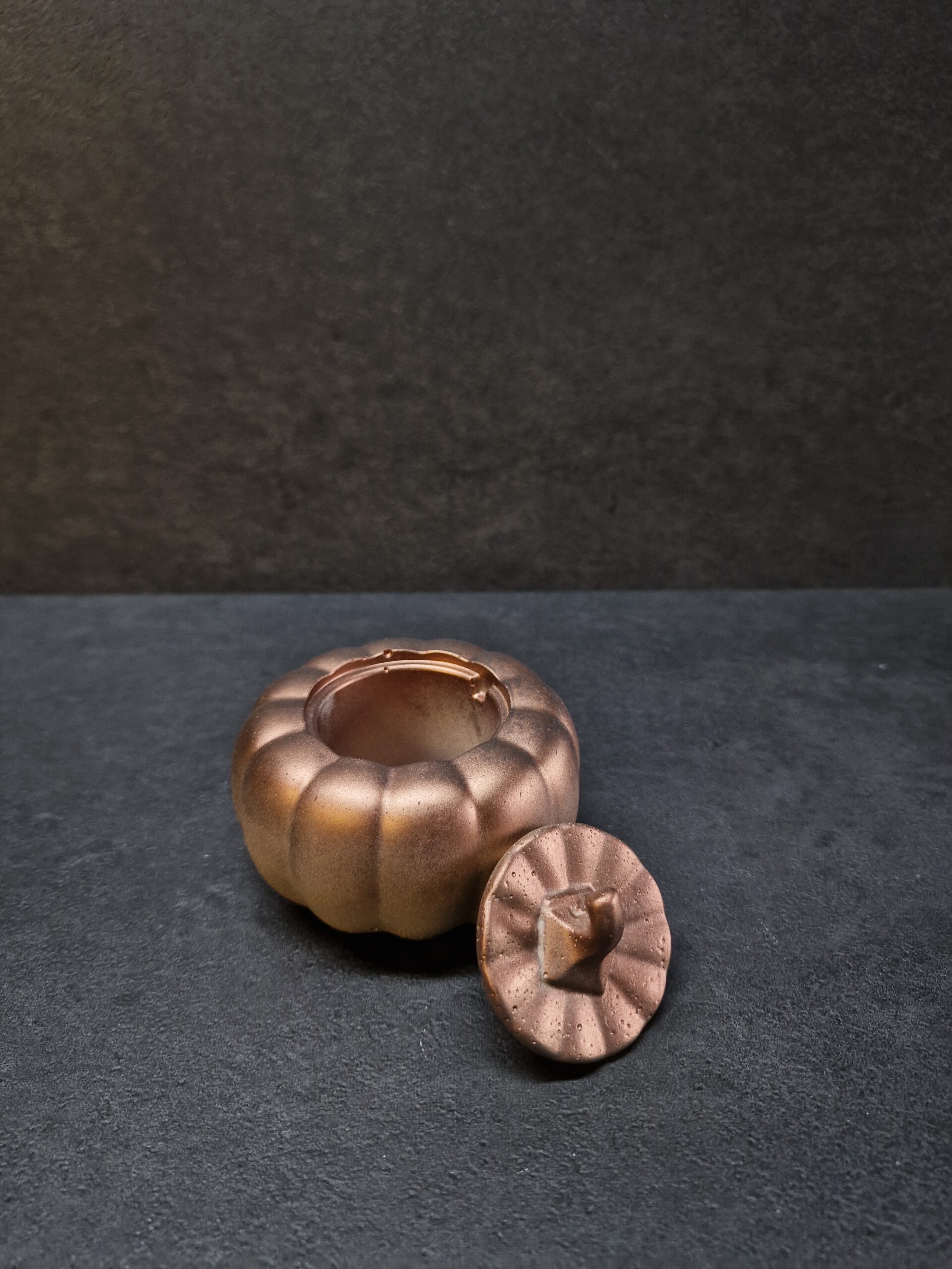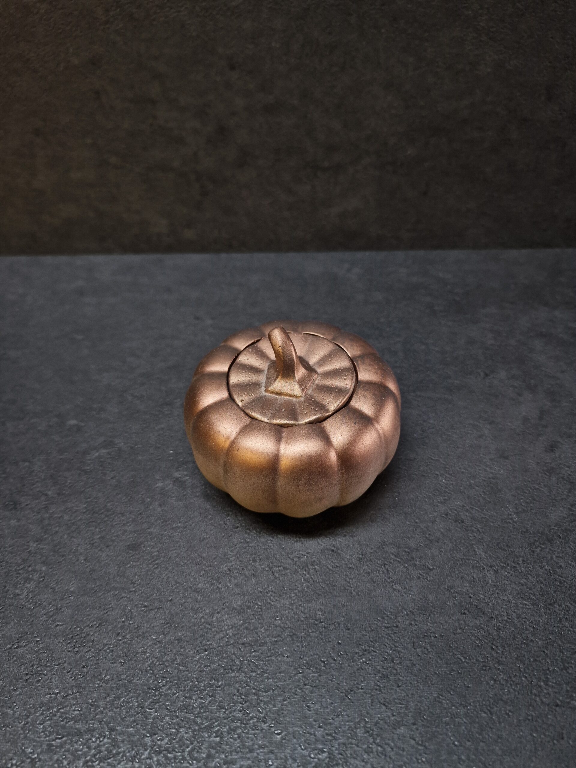 Šis išskirtinis betoninis indelis suformuotas kaip stilingas moliūgas – tai ne tik praktiška vieta smulkmenoms laikyti, bet ir išraiškinga sezoninė dekoracija, kuri įneš jaukumo bei šventinės nuotaikos į tavo namus. Dėl savo bronzinio atspalvio jis subtiliai žaidžia šviesoje ir puikiai dera tiek moderniame, tiek klasikiniame interjere.