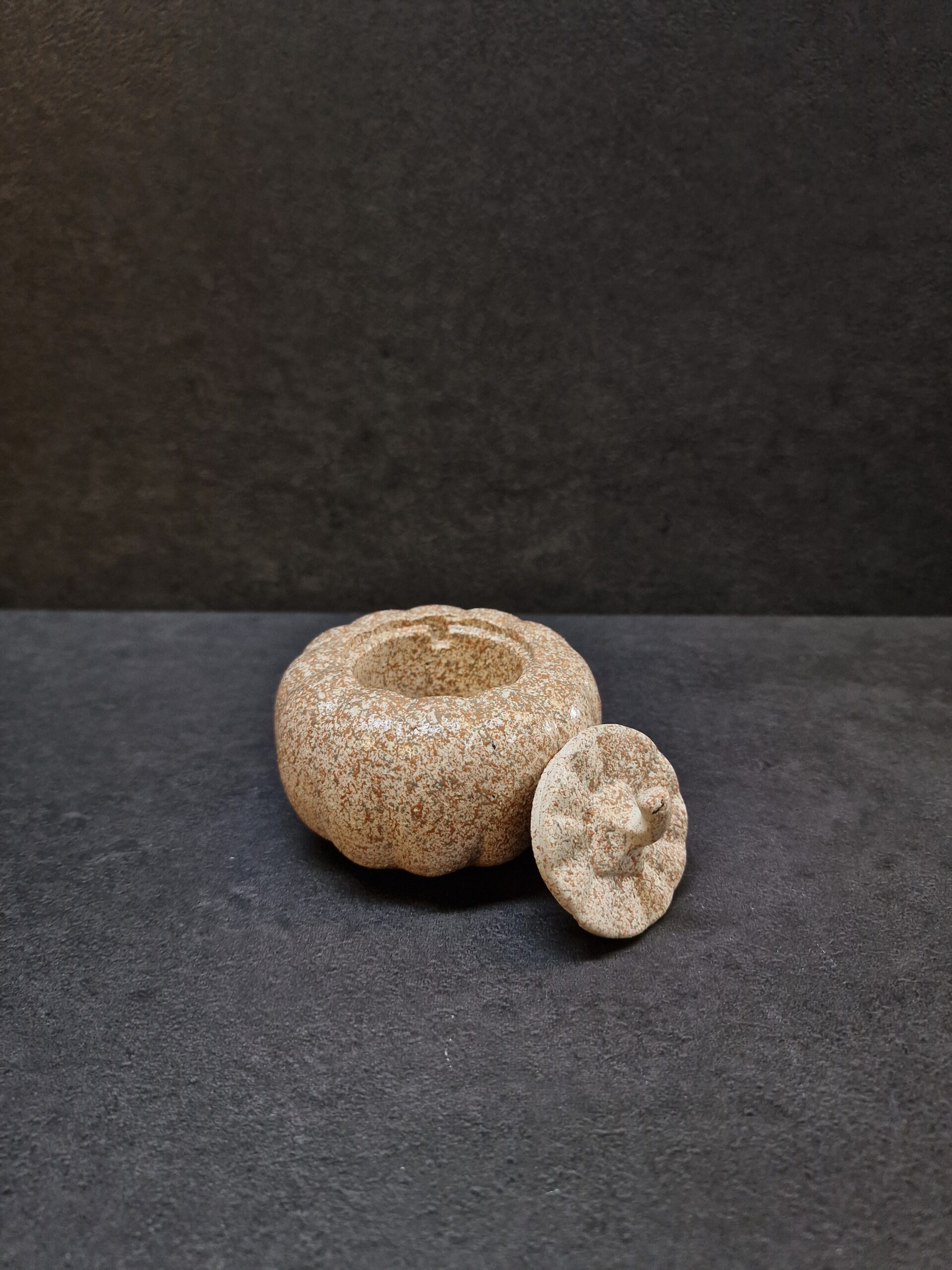 🎃 Betoninis rankų darbo indelis „Moliūgas“ – natūralaus granito tekstūros