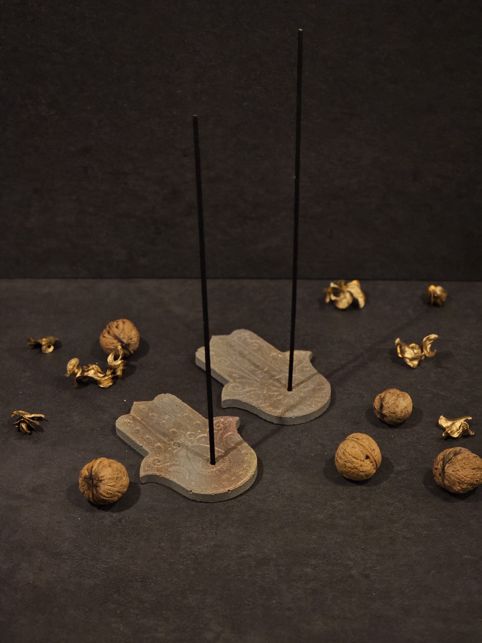 Rankų darbo betoninė dekoracija-smilkalų laikiklis Fatimos ranka 2 vnt