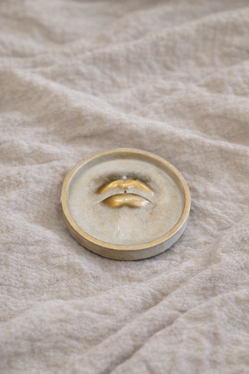 Išskirtinis interjero akcentas, skirtas tiems, kurie vertina originalumą ir menišką detalių prasmę. Šis minimalistinio dizaino betoninis smilkalų laikiklis išsiskiria lūpų formos reljefu, suteikiančiu žaismingumo bei šiuolaikinės estetikos pojūtį.