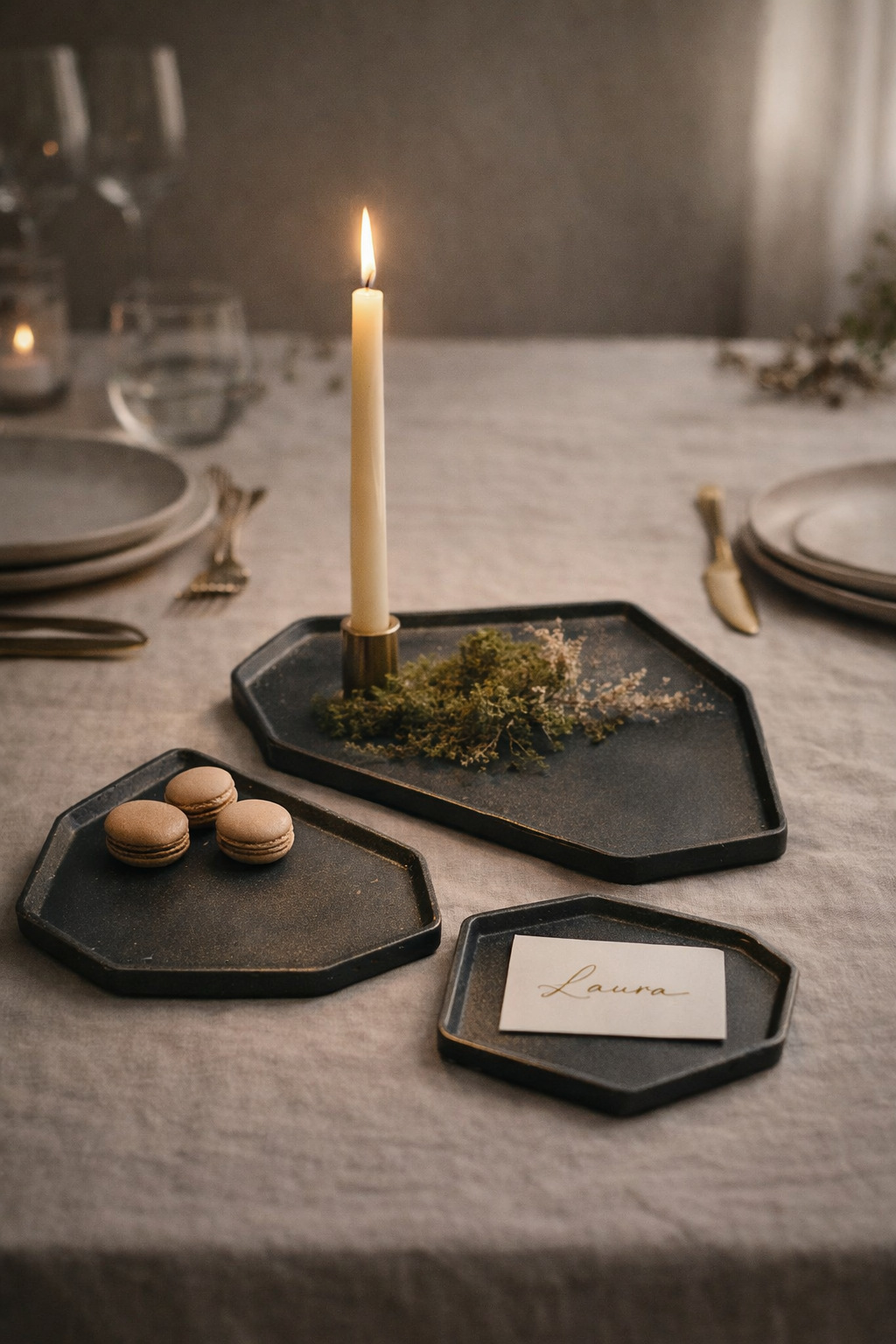betoniniai padėkliukai, padėkliukų rinkinys, dekoratyviniai padėkliukai, rankų darbo dekoras, minimalistinis interjeras, interjero aksesuarai, betono dekoras, padėkliukas papuošalams, modernus namų dekoras