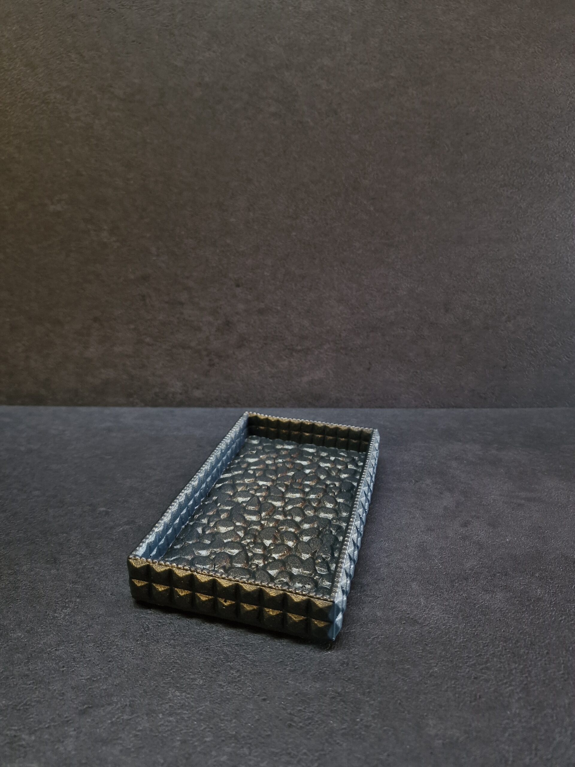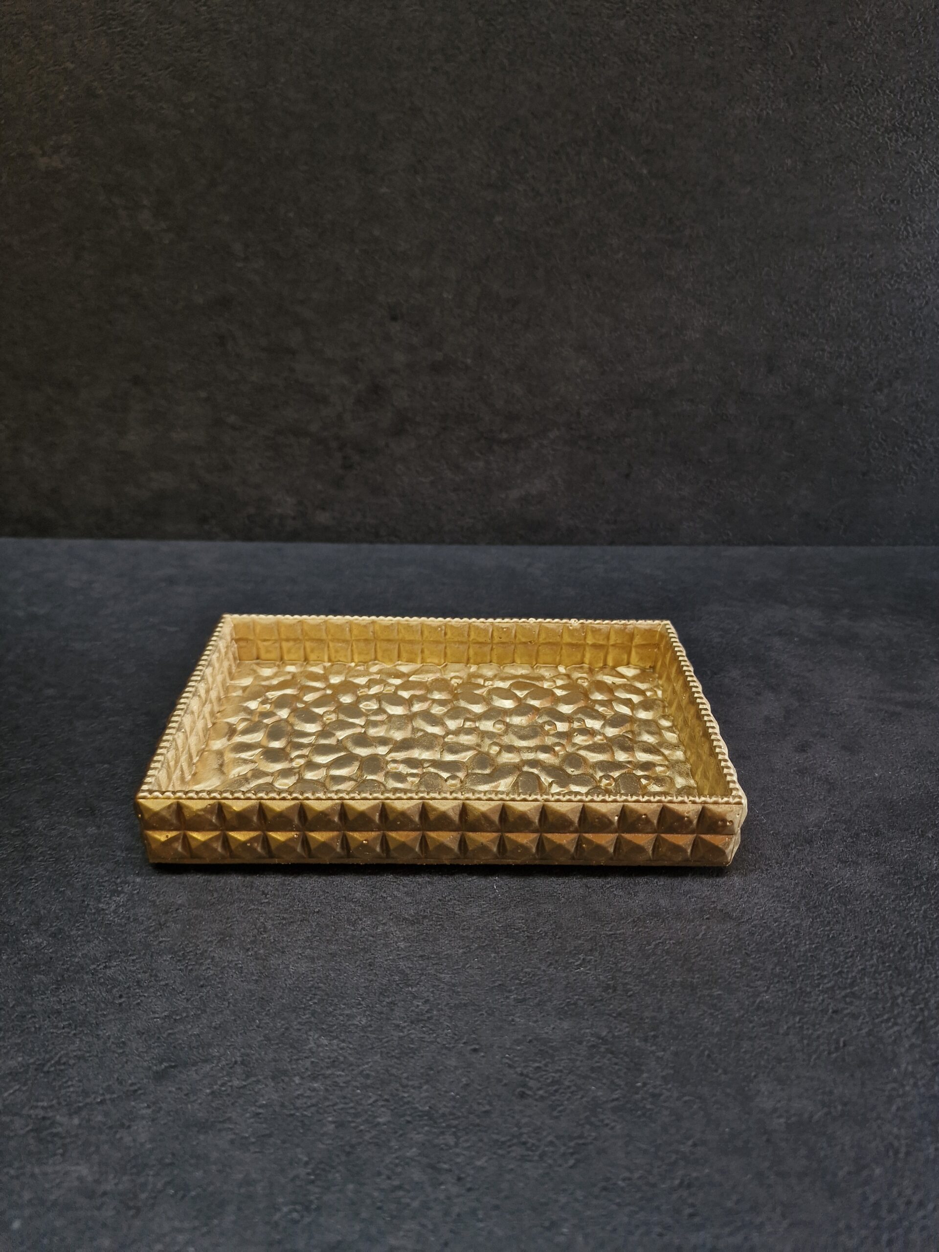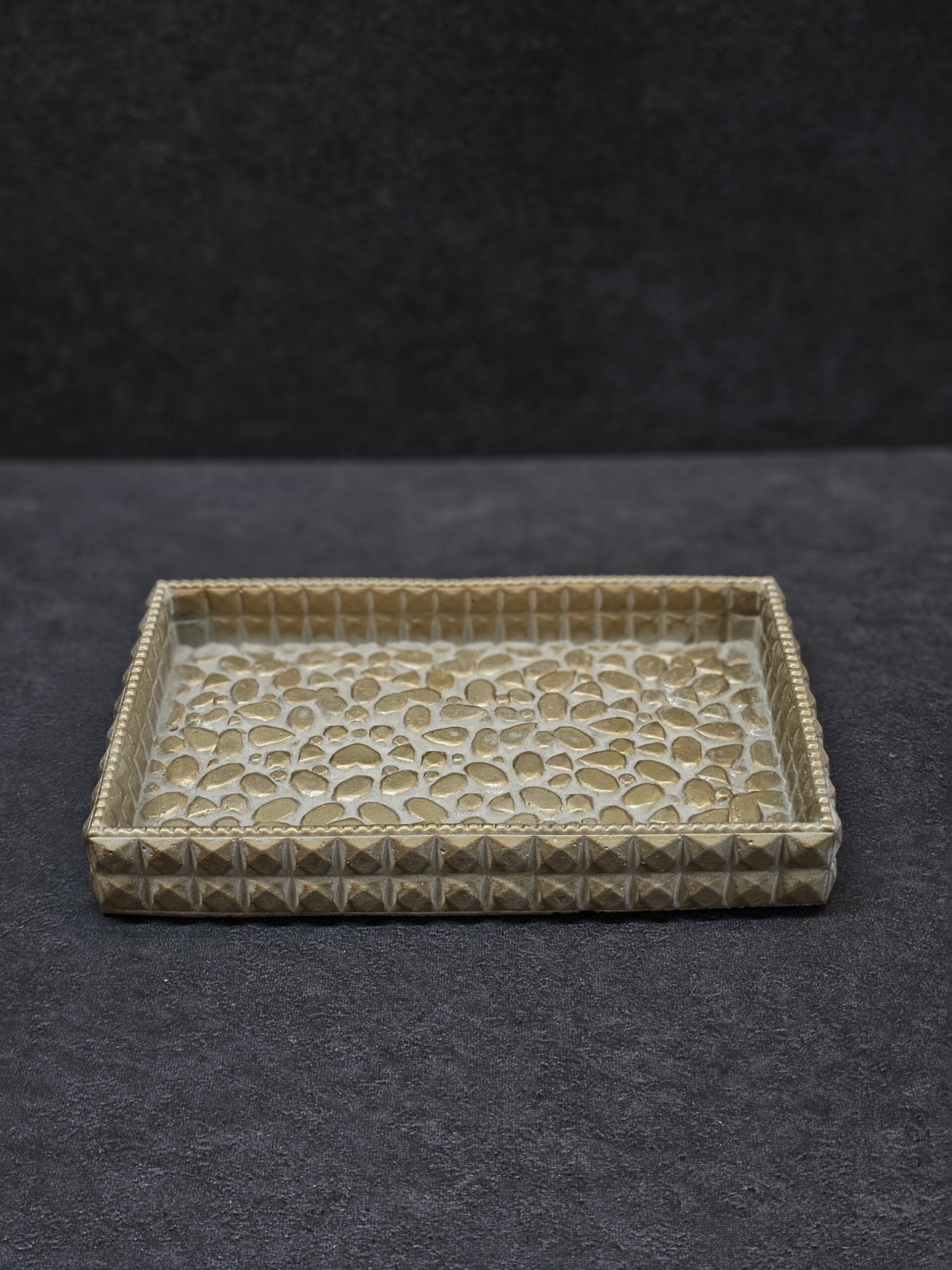 Betoninis rankų darbo padėkliukas – tai unikalus, solidus aksesuaras, kuris taps išskirtine Jūsų interjero detale. Kiekvienas padėkliukas yra kruopščiai išlietas rankomis, todėl pasižymi autentiška tekstūra ir subtiliu auksiniu, sidabriniu arba bronziniu atspalviu, kuris šviesoje įgauna šilto metalo blizgesį.