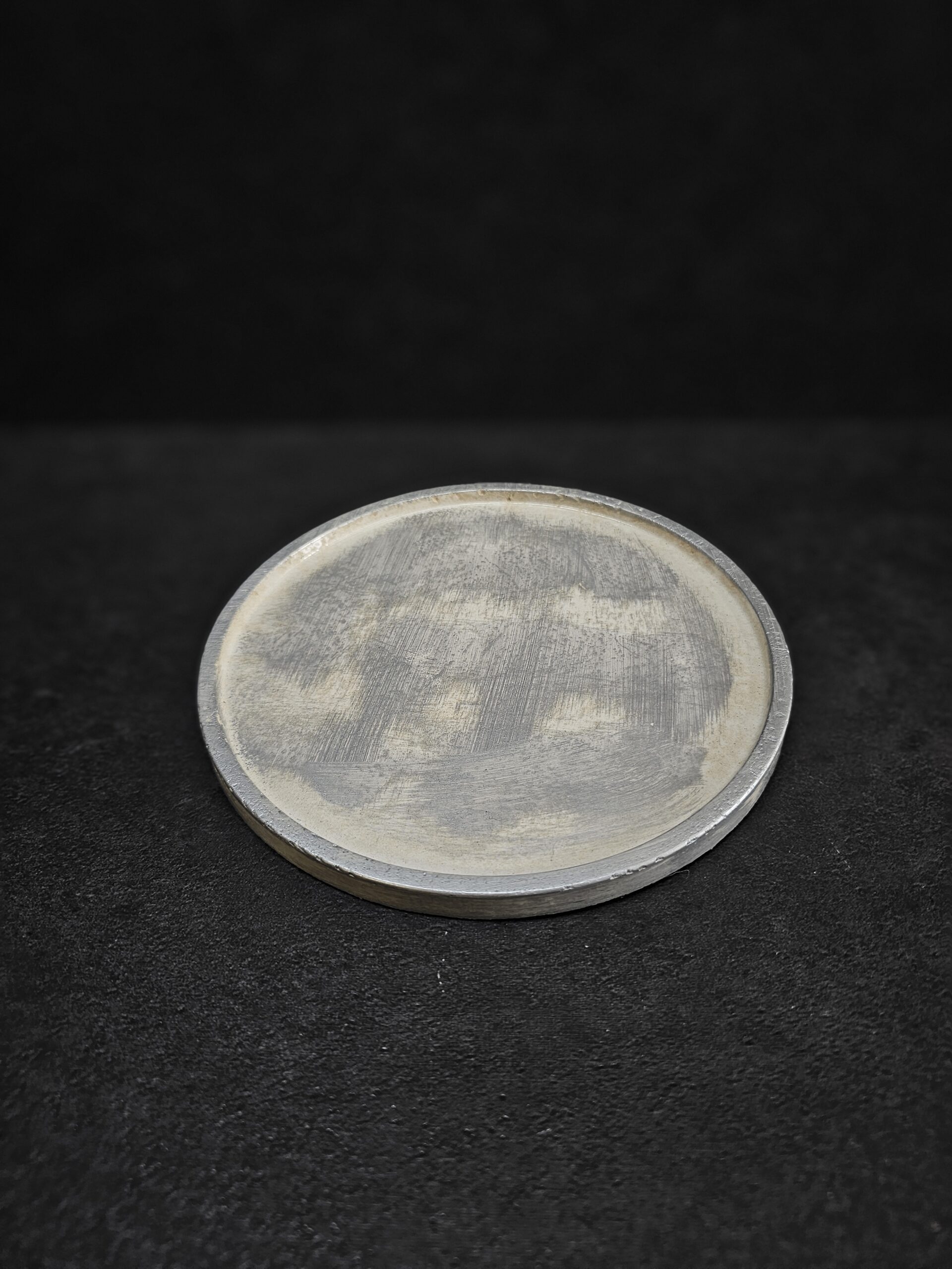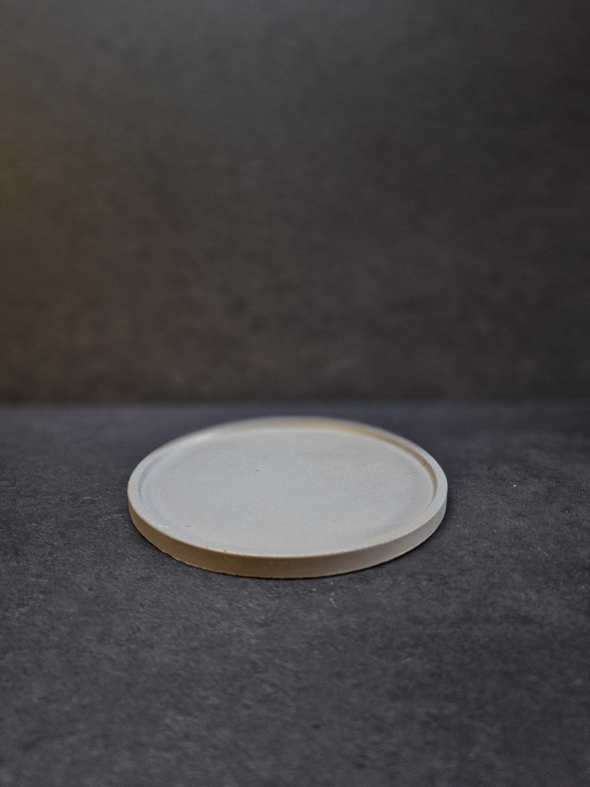 betoninis padėkliukas, apvalus padėkliukas, rankų darbo interjero detalė, betoninis aksesuaras voniai, minimalistinis padėkliukas, modernus stalo akcentas, betono dekoras, pilkas padėkliukas, padėkliukas desertui, dovana namams