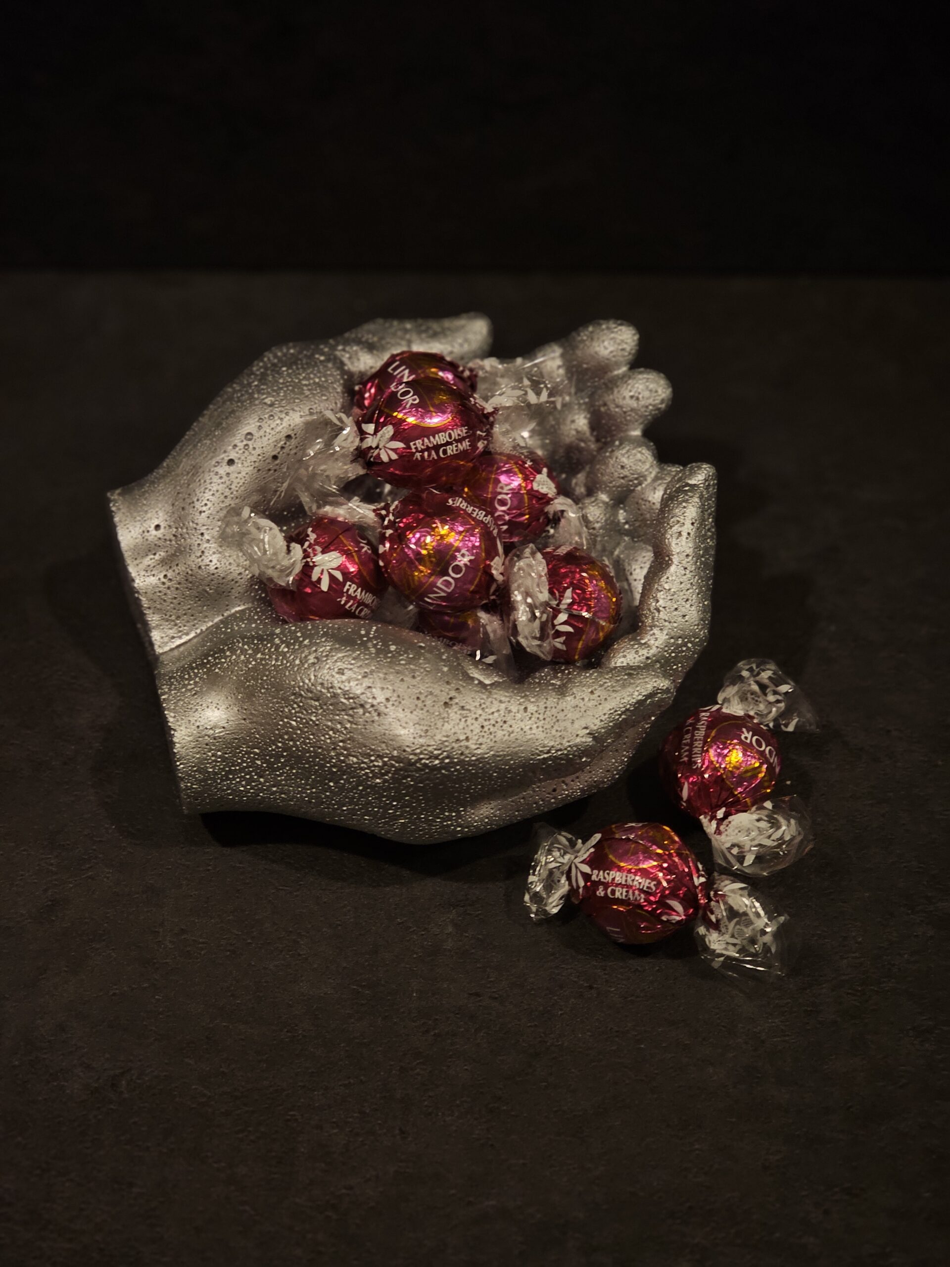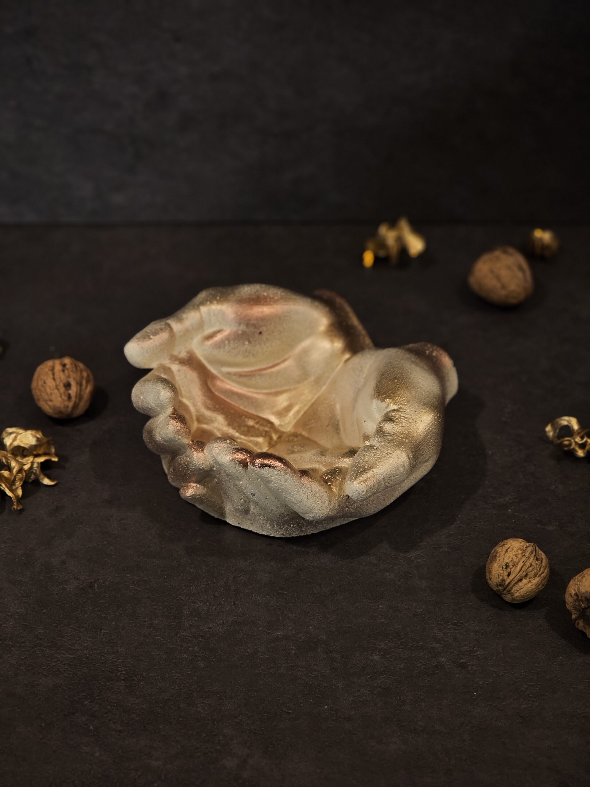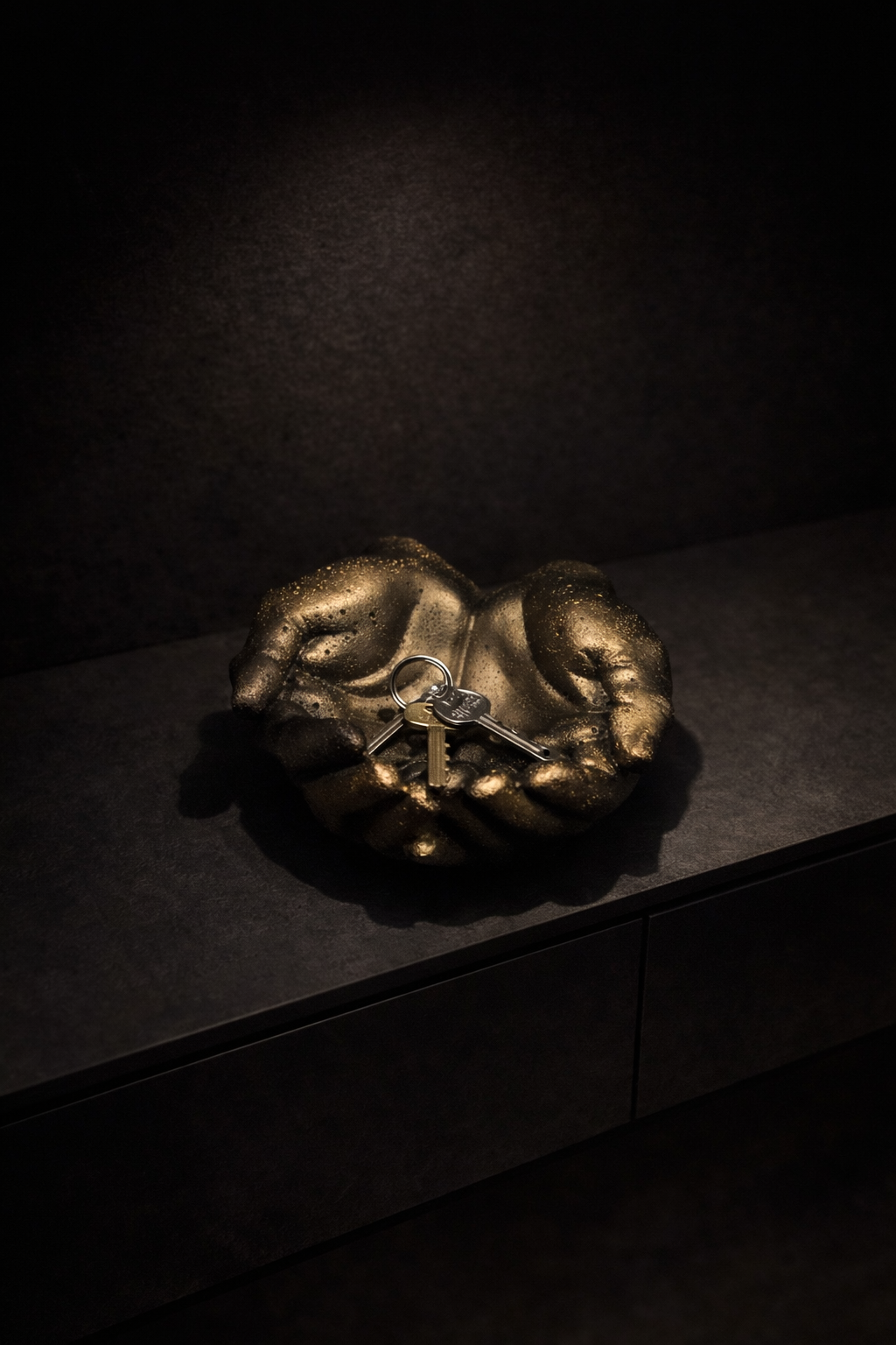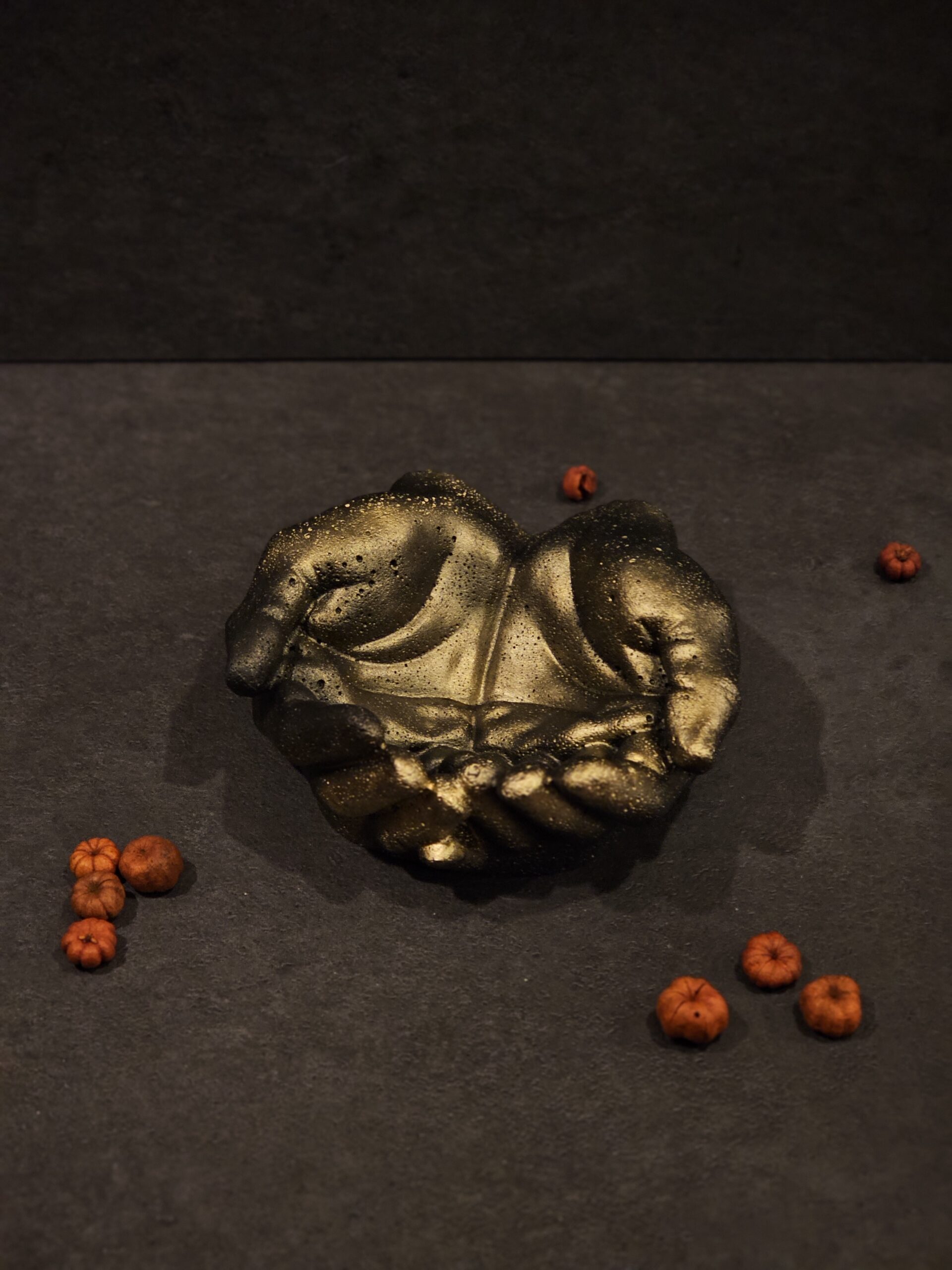 Ši rankų darbo betoninė dekoracija – tai ne tik stilingas interjero akcentas, bet ir simbolinė detalė, perteikianti ramybę, globą ir duodančias rankas. Aukso, sidabro arba bronzos atspalvis suteikia jai prabangos ir išskirtinumo.