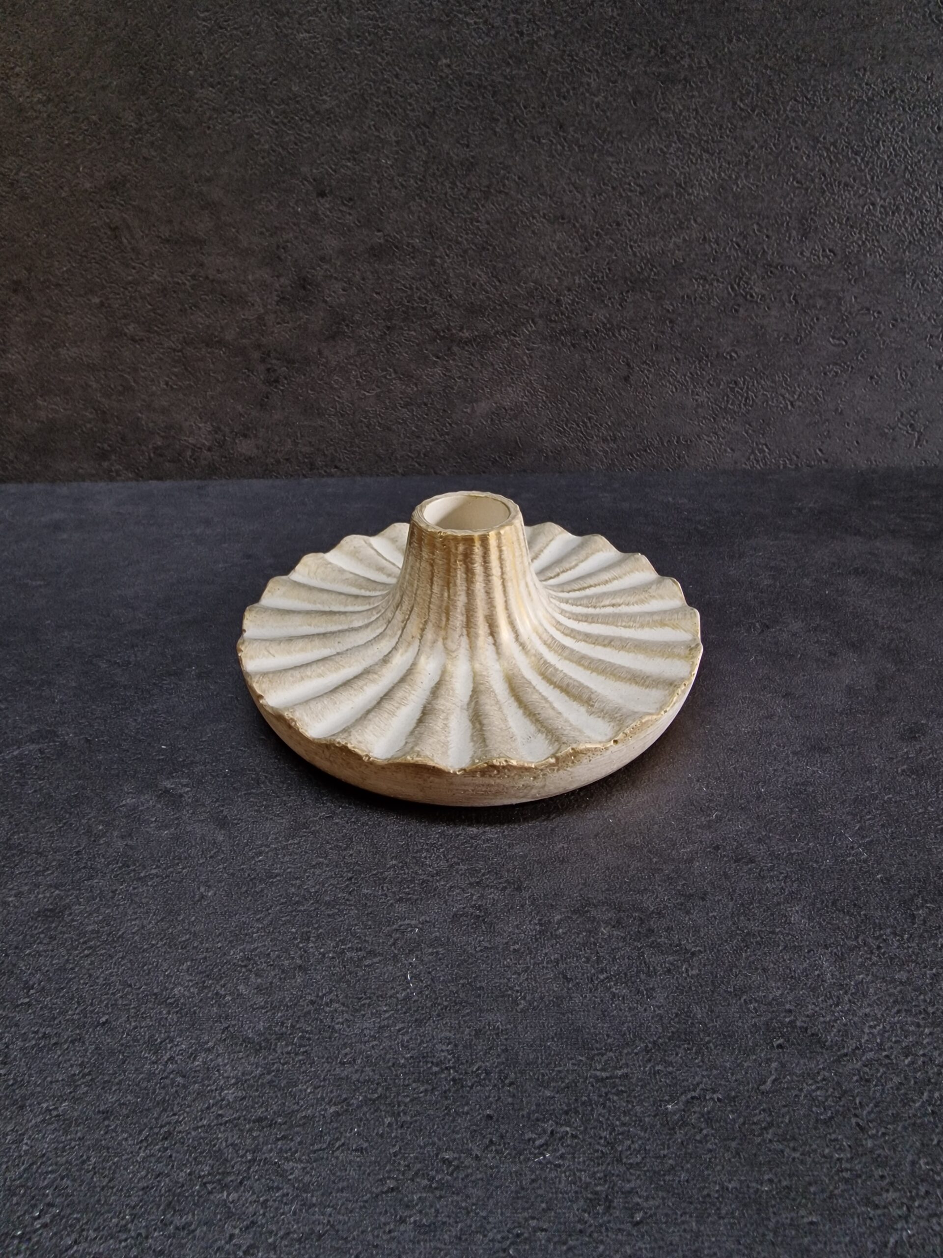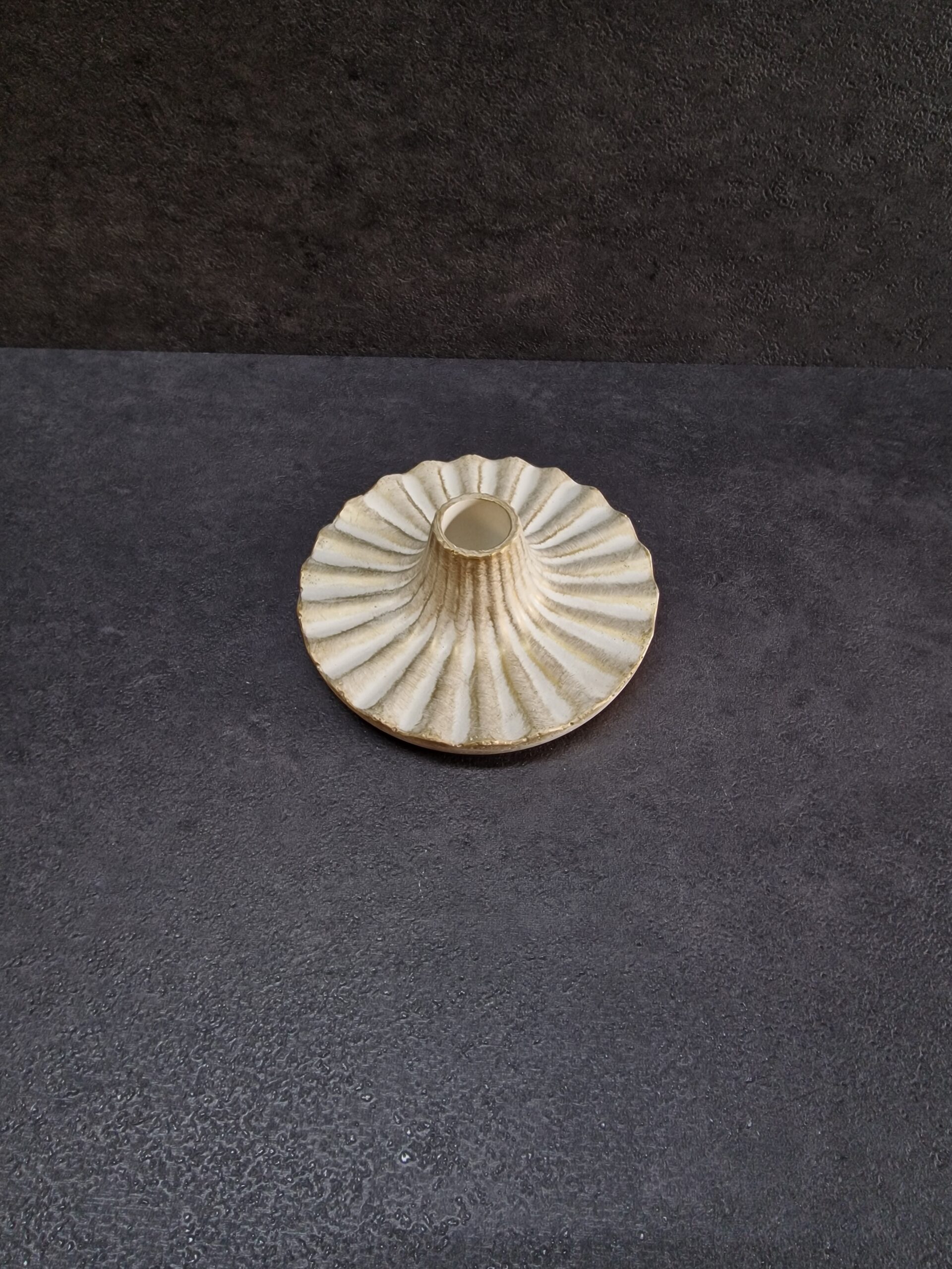 Išskirtinio dizaino betoninė žvakidė, kuri sujungia klasikinę eleganciją ir modernų minimalizmą. Kiekviena žvakidė yra rankų darbo kūrinys, todėl kiekvienas gaminys – vienetinis, su subtiliais paviršiaus niuansais ir sendinto aukso atspalviais, kurie suteikia interjerui prabangos ir išskirtinumo.