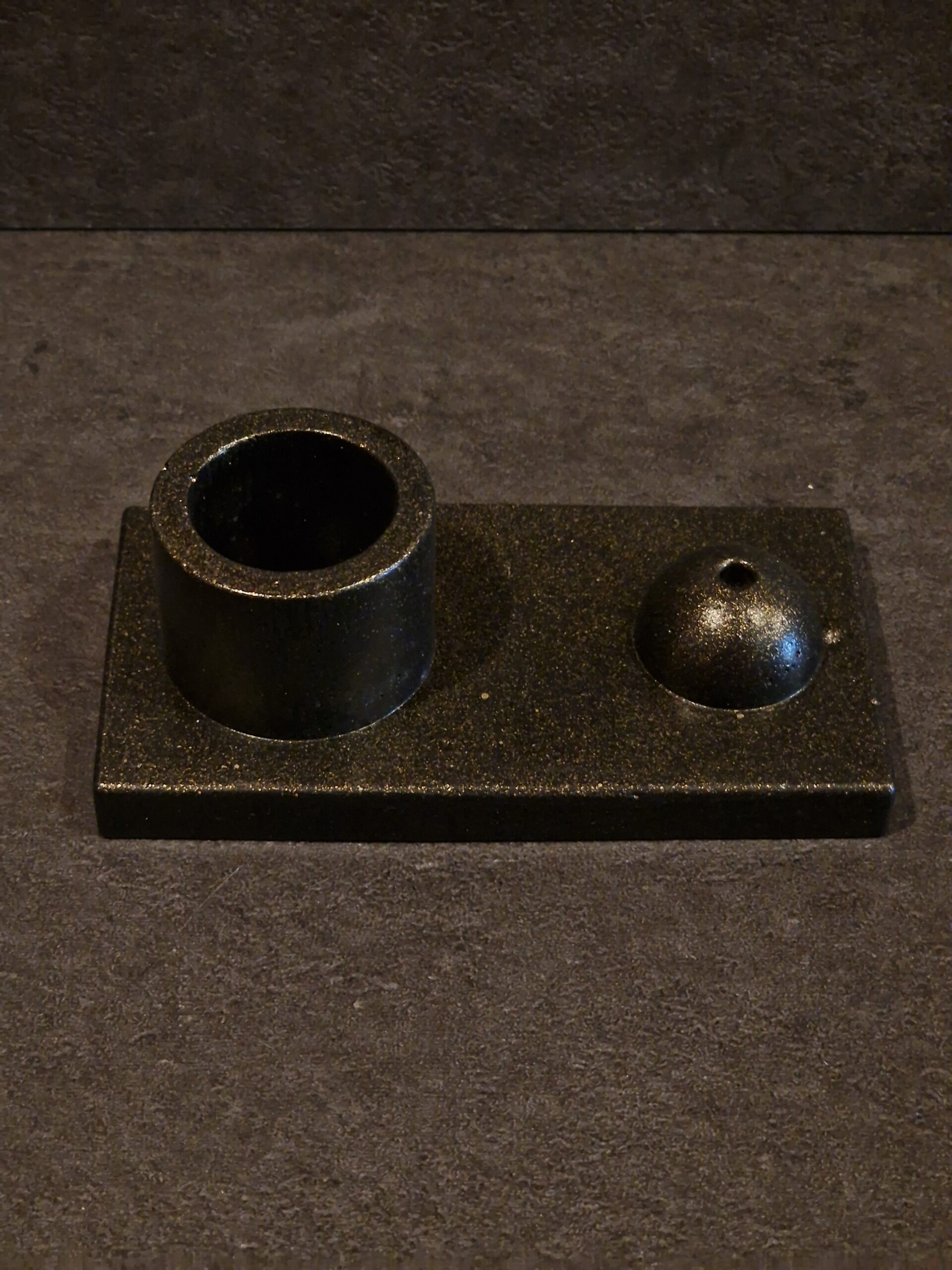betoninė žvakidė, rankų darbo žvakidė, žvakidė-smilkalinė, modernus interjero aksesuaras, minimalistinė namų dekoracija, aromaterapijos aksesuarai, betoninė smilkalinė.