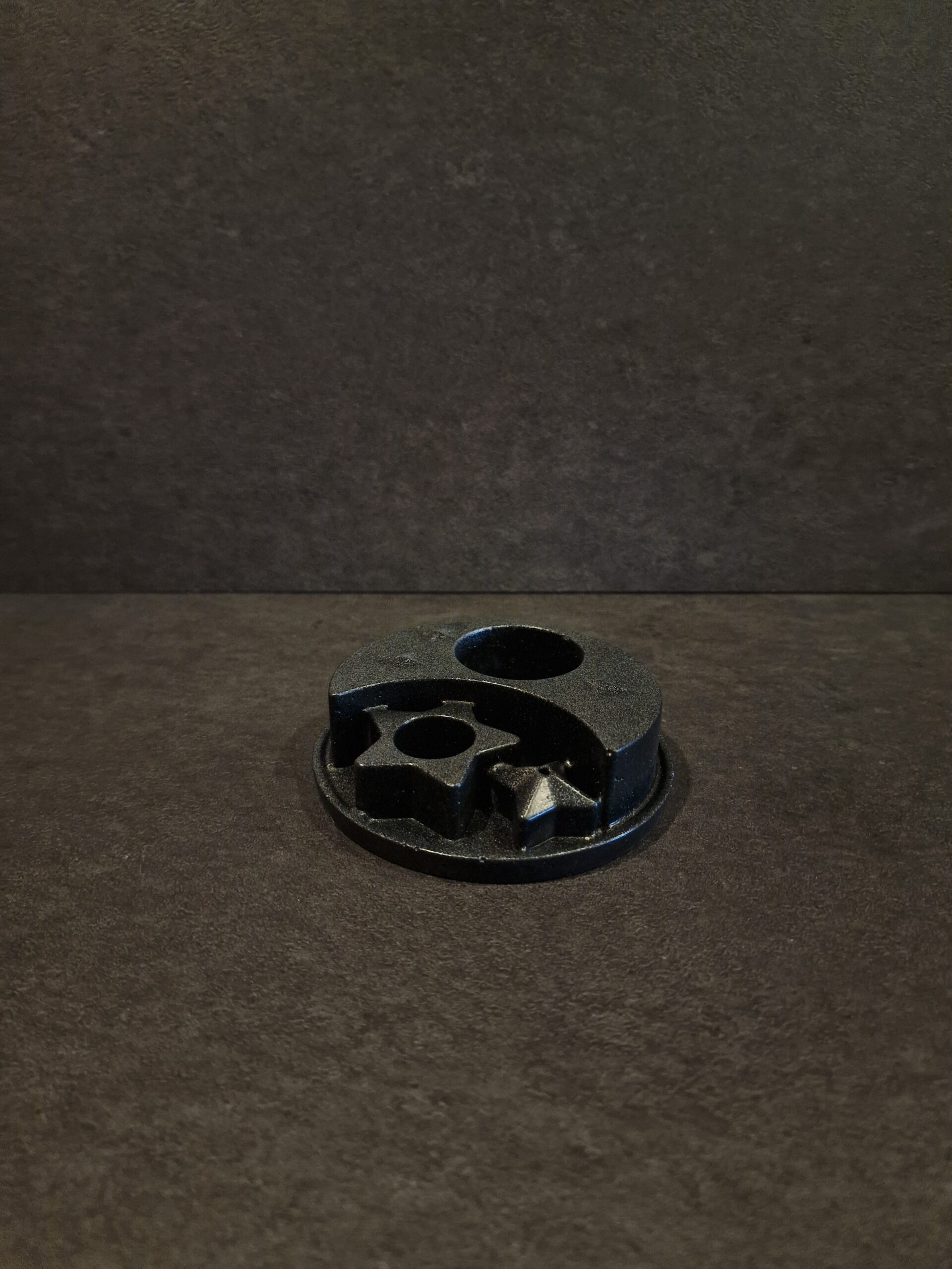 Ši išskirtinio dizaino betoninė žvakidė-smilkalinė – tai daugiau nei tik interjero detalė. Tai ritualinis akcentas, sukurtas tiems, kurie vertina mistiką, simboliką ir gilesnę prasmę kasdienybėje. Unikali pusmėnulio, žvaigždės ir saulės forma sukuria subtilų kosminės energijos pojūtį, todėl ji idealiai tinka tiek ritualams, meditacijai, aromaterapijai, tiek kaip dekoratyvinis namų akcentas.